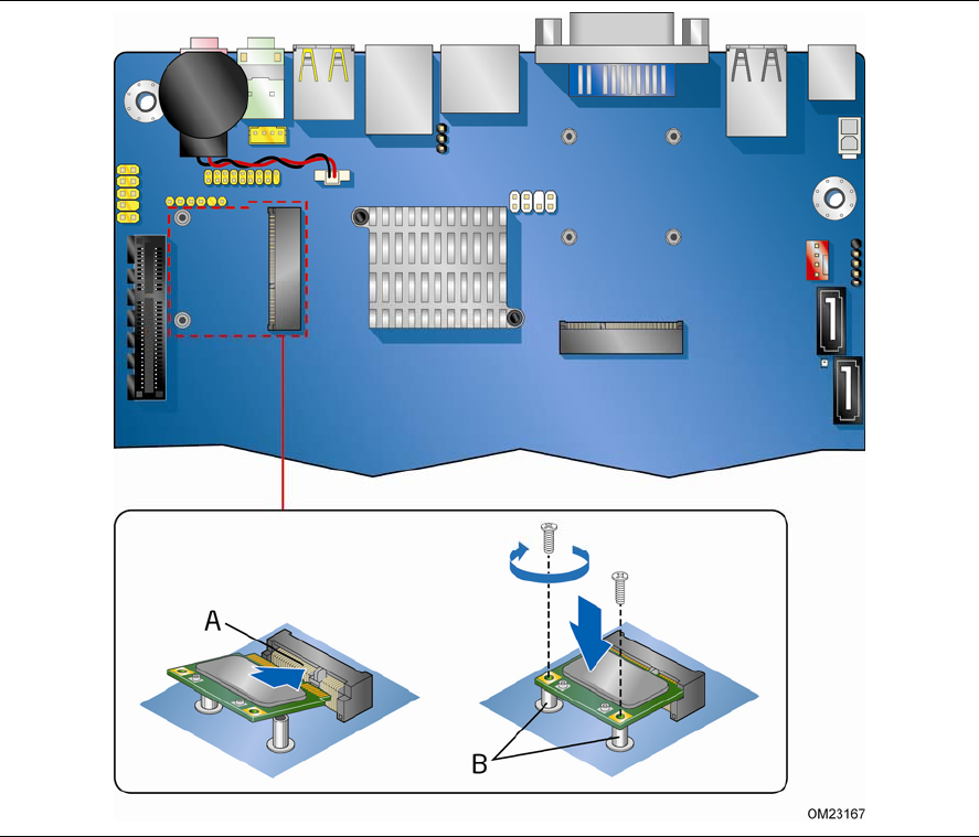 A PCI Express Half-Mini Card can be installed in the Desktop Board’s PCI Express