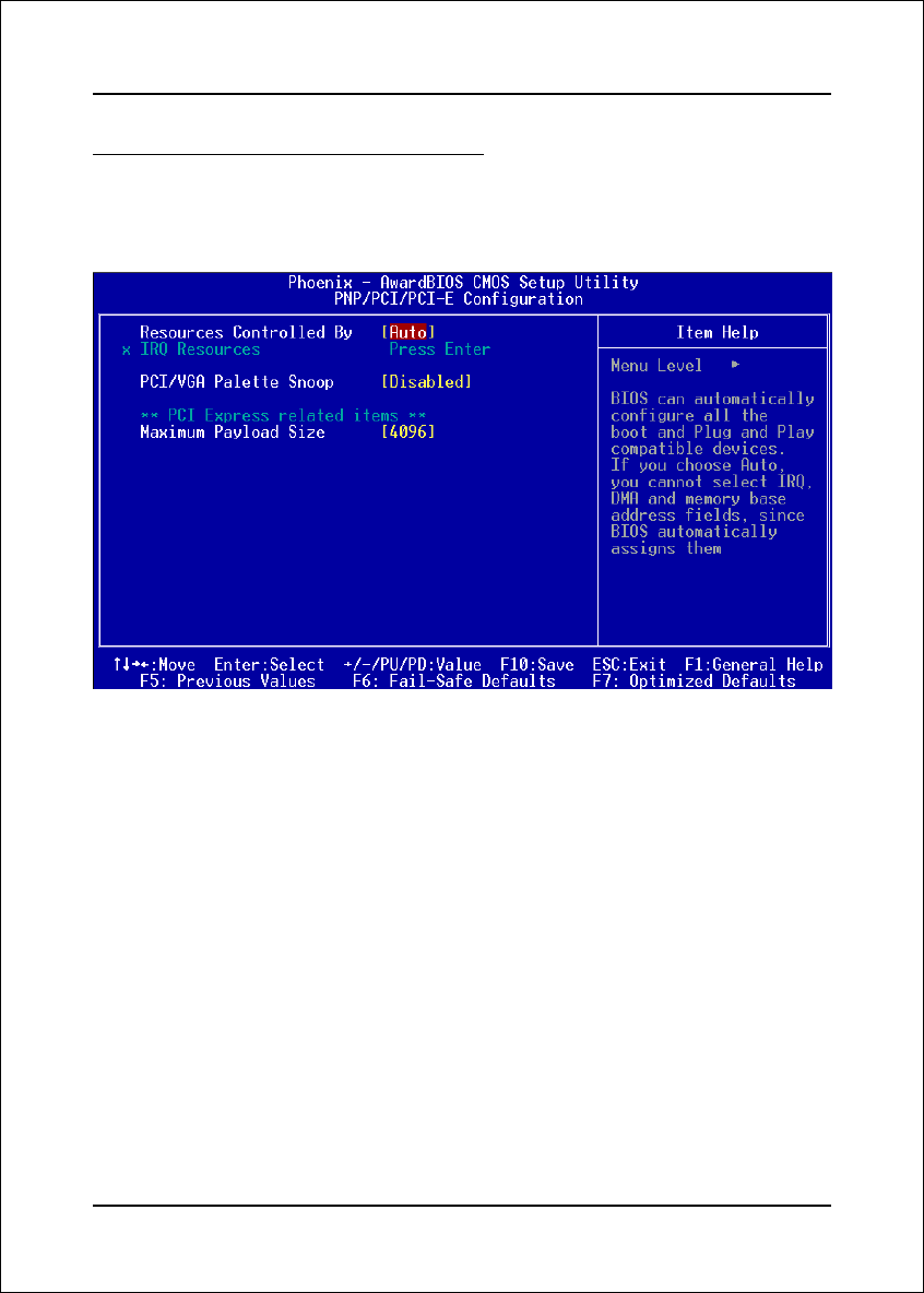 Manual: PNP Card’s resources are controlled manually. The “IRQ Resources” field
