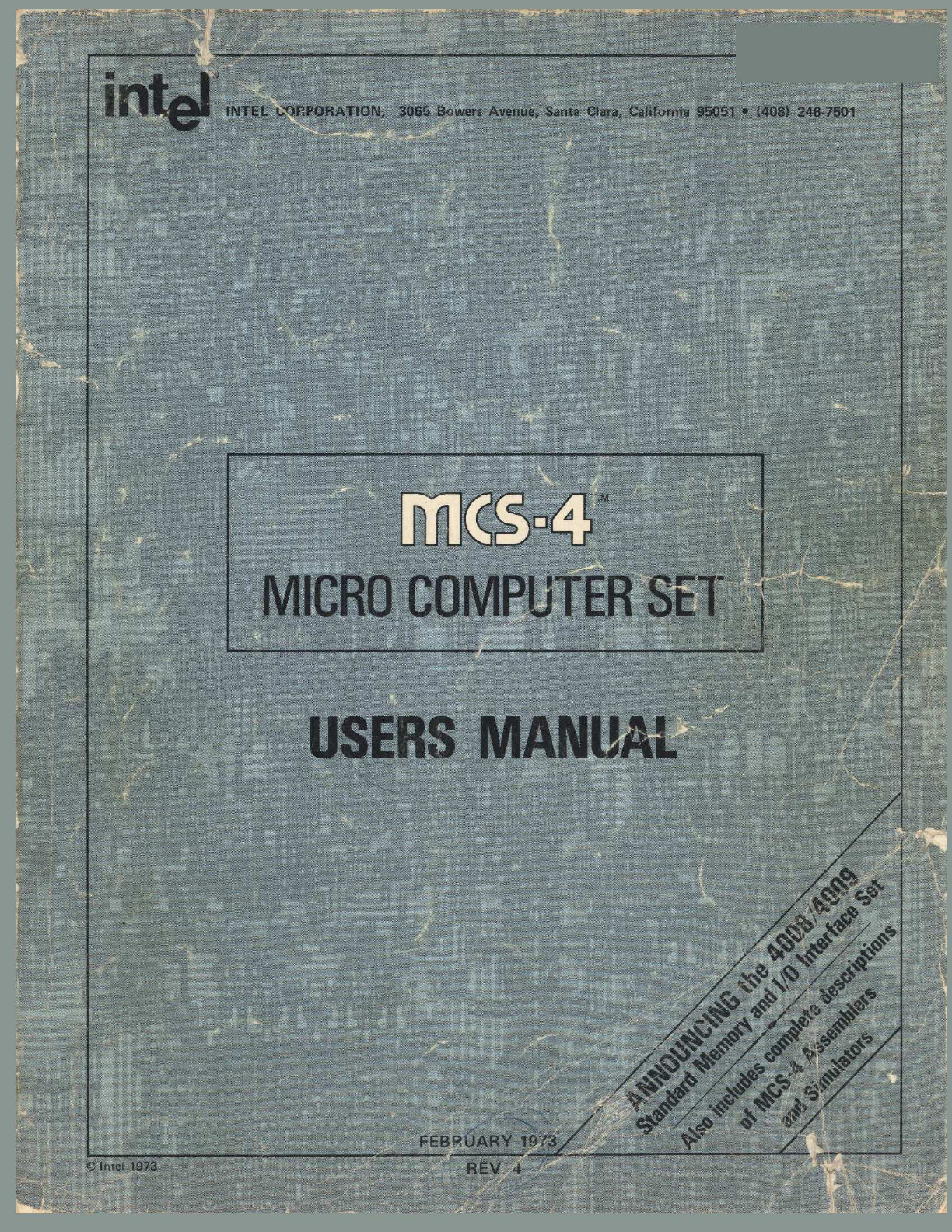 Intel MCS-4 User Manual Page 1